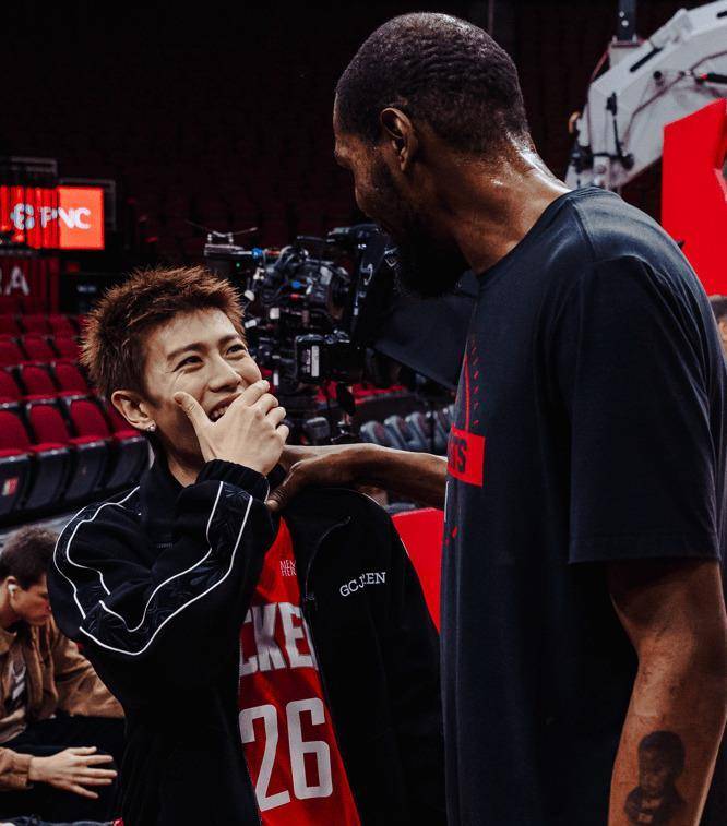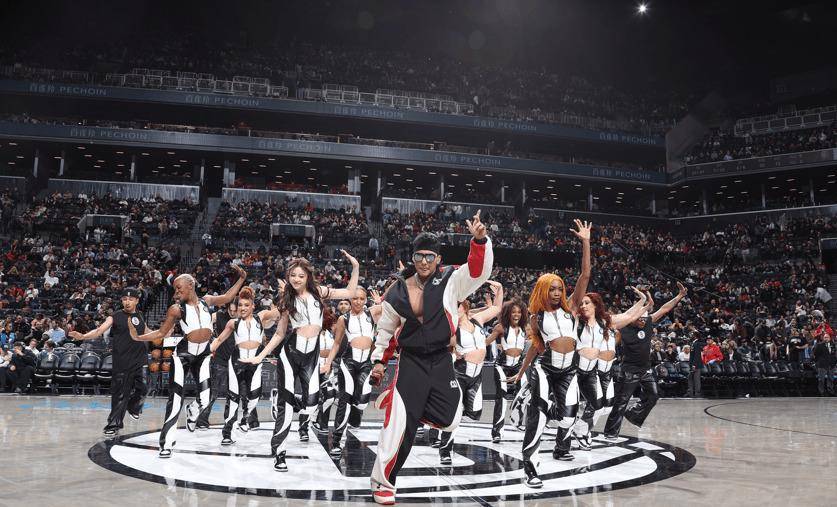 中场休息的15分钟,彻底变成了一个中国风主题大秀。著名歌手刘畊宏登台,用他极具感染力的表演把现场气氛点爆。紧接着,篮网队自家的两支拉拉队:Team Hype和Brooklynettes,跳起了融合中国舞蹈元素的主题表演。拉拉队里有一位中国籍成员朱奕萌,她是Brooklyn8的队员,她的亮相本身就是中西文化交融的一个生动注脚。这种文化的交流与融合并非篮网队独有。就在同一天,休斯顿火箭队的主场,中国艺人任嘉伦也在中场表演时登台,唱跳了新歌,还和火箭队球星凯文·杜兰特进行了交流。